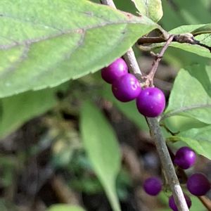 今日のお花 紫式部 紫色の玉が重なり合っていることから “ムラサキシキミ”と呼ばれていたそうです 別名玉紫🟣 今月半ばの写真です とうとう今月も今日で最後 来月もよろしくお願いします