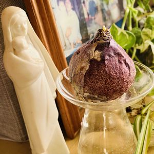 冷蔵庫の野菜室に入れっぱなしにしていたヒヤシンスの球根 慌てて水耕栽培へ 金曜日のことなのですが 今朝起きて見ると根が盛り上がって窮屈そう(成長が早い!) 急遽ワイヤーで球根置きを作って別の瓶へ入れ替えました 不器用なので相変わらず残念な仕上がりです😅 らっきょうが入っていた瓶で安定感だけは有ります 3枚目の写真は去年の分球した土植えのヒヤシンス 花は咲かなくても青々と葉っぱが伸びてくれたらそれで良いかな 食べた後の豆苗も伸びてきました その調子♪その調子♪♪ 今日は少し暖かいです 午後からもお元気で☺️