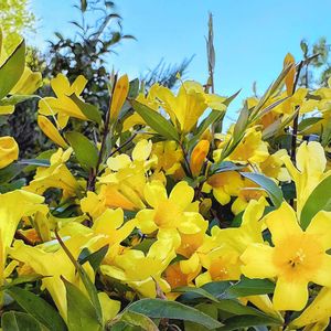 カロライナジャスミン💛 黄色いお花満開だよ〜🐾 ٩(ˊᗜˋ*)و•*¨*•.¸¸🌼