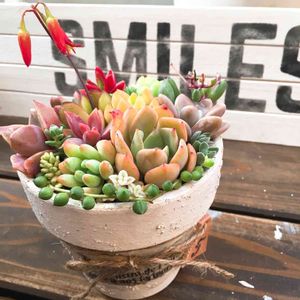 イベント用に寄せ植えしました (◍˃̶ᗜ˂̶◍)ノ" 色が綺麗で嬉しいな(´︶`艸)♡