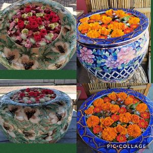 川越市、最明寺の花手水 その2💗 右の花手水の中に小人さんがいます。🧚🌻 美しい器も見応えがあります。💕