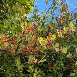 今日のお花ガマズミではなく 1️⃣トキワサンザシまたの名をピラカンサ 🔴🟢🔴⚫🟢