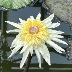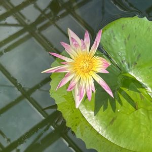 神代植物園🆕品種🪷 ダーシープレスネルN. Darcy Presnell昼咲種🪷 花弁が非常に細長く、これを大きく花を開くため、水面上でも大変目立ちます。花弁元は白で花弁先に行くほどピンクが濃くなっていきます。葉はグリーンでごくわずかに茶色のドットが入ります。 感想〜この品種🪷は滋賀県草津みずの森で初見でした。 他では見なかったのでもっと気楽に見れるようにとオススメしました。
