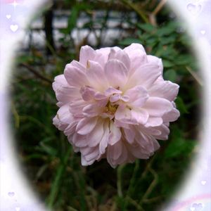 レイニーブルーの小花が開きはじめました。🌹この時期は小花ですね(* ˊ꒳ˋ*) 夏剪定はつるバラはしなくて良いものなのか分からず、そのまま好きなだけ気ままに伸び放題で育ててます( '-' )