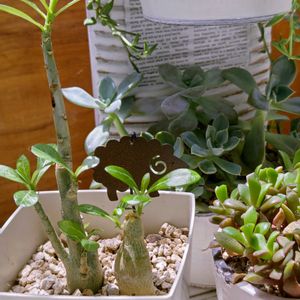 今日のお花 アデニウム 100均で、別年で購入した2鉢を、6月に1鉢に…その時にカットした右側は、すぐに葉が出てくれました😊 桜吹雪☘️お花は、一度も咲いた事がない💦 ④pic 2022.8月より
