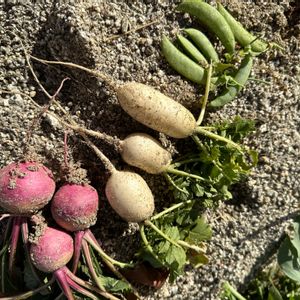 今日の収穫 ももたろう というフルーツカブ 手のひらサイズの大根 初収穫のお豆