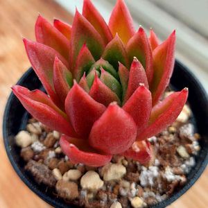 レッドクリスマス です 今日は1日雪が降り続いています⛄ 我が家のセダム達がなかなか色が出てこないので、きのう思いきって外に出そうと思っていて忘れた、忘れて良かった💦 たまには忘れん坊も良い時もある🎵