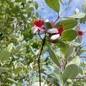フェイジョア✨ 実家🏡‥ 今年もフェイジョアの花が咲いた✨ 可愛い♡実だけじゃなく、この可愛いお花も食べれるんだとか‥実家の近所のおばちゃんが教えてくれた📝