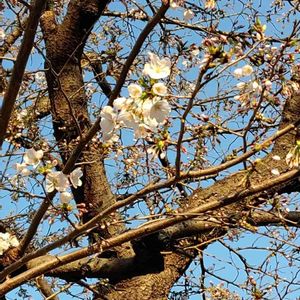 昼間の庭の桜です 青い空、風も爽やか😃✨ 朝と夕方の2回、 花びらの道路清掃しましたよ😃 隣の従妹と一緒に🧹🧹🍃🌸🧹🍃🧹🌸😵💦😱💦 明日は雨☔️ 🌸もってよね😃