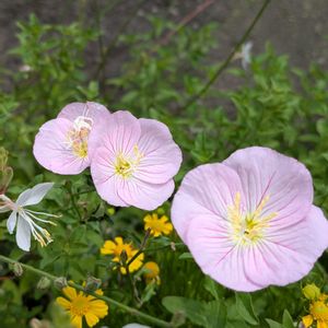 こんにちは〜😊 いつもの朝さんぽ🚶♀️🚶♀️🚶♀️ 昼咲き月見草が咲いていました 蕊がユニークで可愛い🩷🥰