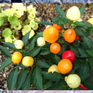 寄植えのゴシキトウガラシが 色とりどりで綺麗でした。🌿🎶