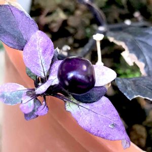 シルバーのポットと渋めの黒い葉と実が鋼鉄感を醸し出しているでしょうか?この後、生育するにつれ、実が赤く変化していきます。同じシルバー鉢でも植える植物で印象が変わるのが面白いです🏵️