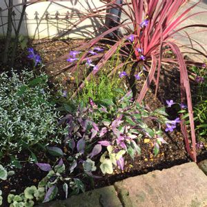 紫の花が咲くんですねー⁉︎ 今年は色んな花を買って、育てて、発見がいっぱいです😍 可愛いです! 最近、忙しくて、ガーデニングに水あげるので、精一杯。 今日、やっと台風で倒れたかけていたプチ塀を補修。 スッキリしました✨