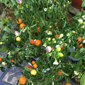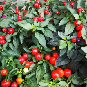 庭のゴシキトウガラシに実がたくさん付き始めました ゴシキトウガラシは観賞用ですが、無農薬であれば食べられます 料理にちまちまと使っていますが、実のなる速度が早くて使うのが追いつきません