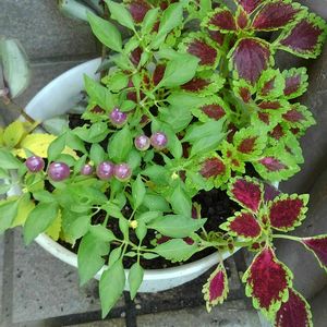 花の枯れ易い時期なのでコリウス、トラディスカンチァと寄せ植えに。