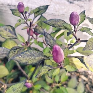 おはようございます、今週もよろしくお願い致します😊🌄 🌼今日のお花トウガラシ 紫色のゴシキトウガラシ・パープル(観賞用トウガラシ)の実、白い小さな花も可愛いです💜🌿 ナス科 トウガラシ属