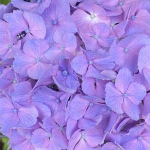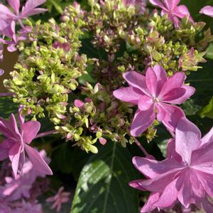 今日のお花🌸 紫陽花です♪ ガクアジサイを集めてみました🎶 がくの色と中心の花🌸の色が、この5枚の写真は、みんな違っています〜🤗