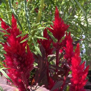 今日のお花 ケイトウ です♪ ①晴れた日にコスモスと寄せ植えにしたものです ②③はまだポットで待機中のケイトウは可愛い💜キキョウ💜と寄せ植えします♪