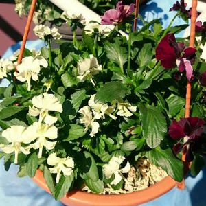 おはようございます🎵 風は強いですが晴天です☀️ ぞうさんビオラ🎵 先週、友人がお花屋さんのバーゲンを教えてくれました😊もう、お買い物は済んでいるのに私を又誘ってお花屋ツアーをしてくれました~⤴️\(^-^)/🎶 シーズン初めは500円位していたぞうさんビオラが何と60円でしたよ👀😊しかもこんなにシックなお色で🎵これで一株‼️ 切りつめればまだまだ数ヵ月楽しめそうです🎵 ピンクのブリキ鉢にピッタリで凄く嬉しくなりました~⤴️\(^-^)/🎶💕 お花好き友人に心から感謝です😊🎶💕 今日も素敵な一日になります様に💕。