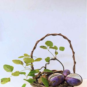 アケビ アケビ科 アケビ属 里山お散歩でやっと手が届くところにアケビが生っていました💜 パックリ美味しそうに口が開けていました🎶 1つはお散歩の途中で食べて秋の味覚を堪能しました。 甘くて美味しかったです😋 花友さんからいただいた籠🧺に飾ってみました💜 口が開いているアケビは傷みやすいので写真を撮った後で美味しくいただきました😋🎶