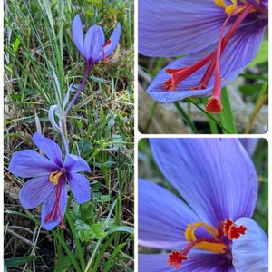 サフラン アヤメ科 クロッカス属 お散歩中にサフランの花が咲いていました。 花弁も美しいですが赤い雌蕊のナント美しいこと!! サフランの乾燥させた雌蕊はサフランライス、プイヤベース、パエリアなどに使われる高級な香辛料です。