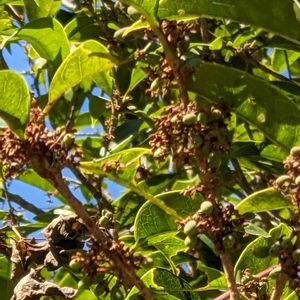 キンモクセイ モクセイ科 モクセイ属 里山お散歩中に他所様のお庭のキンモクセイに果実がついているのを発見ました! キンモクセイは中国原産で雌雄異株。 日本には雄株だけが入ってきたそうで雌株の果実は初めて見ました!