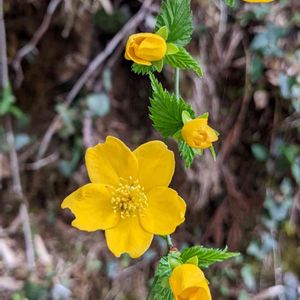 里山お散歩👣 竹林の中のヤマブキが咲きはじめていました。 とても綺麗でした🌼✨✨ ヤマブキ バラ科 ヤマブキ属