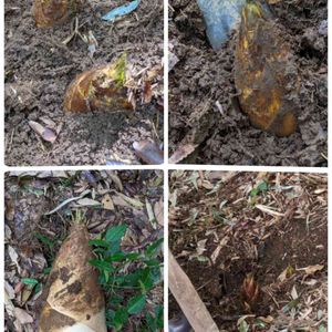 里山お散歩もそこそこに 竹林を所有する花友お婆さんの竹林でタケノコを掘らせていただきました。 まだタケノコの頭が出ていないので足で落ち葉をどかしながら探しました。 タケノコ掘りはコツがあるみたいで私には難しくて花友お婆さんはとても上手に掘ってくれました。 掘りたて新鮮なタケノコはアクがなくてお湯で茹でるだけで良いそうです。 今夜はタケノコご飯🍚とタケノコのステーキを作ります🎶