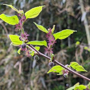 ヒメコウゾ クワ科 コウゾ属 コウゾはカジノキとヒメコウゾの交雑種。 コウゾ、ミツマタ、ガンピは和紙の3大原料。ヒメコウゾも和紙の原料。 球形で赤紫色の糸状の花柱が雌花。 丸い団子のような形をしているのがまだ花粉が出ていない雄花です。