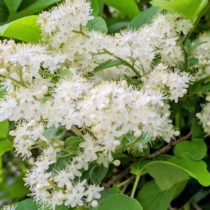 里山お散歩👣 ガマズミのお花が咲きはじめていました。 小さな小さなお花の集合花 ツンツンした雄蕊が可愛らしいです🎶 ガマズミ レンプクソウ科 ガマズミ属