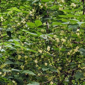 里山お散歩👣 ミツバアケビのお花が咲いていました。 秋の果実が楽しみです🎶 ミツバアケビ アケビ科 アケビ属