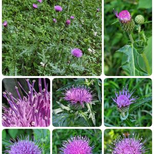 里山お散歩👣 ノアザミ キク科 アザミ属 可愛いアザミがたくさん咲いていました💖 太陽☀に花粉がキラキラ光って綺麗✨✨ 小さな花の集まりのアザミは外側から咲きはじめます。 先に筒状の雄蕊が伸びて虫などの刺激を受けて花粉を出すそう。 その後で筒の中を雌蕊が花粉を押し出しながら伸びて自家受粉を防いでいるのだそう。 雄性先熟 凄いシステムですネ!