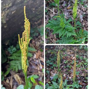 里山お散歩♪ 右上は10月6日に撮影picしたオオハナワラビです。 今日見たら胞子葉がカズノコみたいな色に変化していました🎶 この色をお花に見立ててハナワラビの名前が付いたのだそうです。 オオハナワラビ ハナヤスリ科 ハナワラビ属
