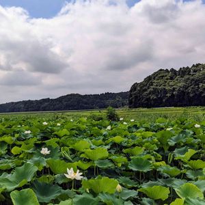 里山お散歩♪ レンコンの産地なので お散歩コースには蓮田が広がっています。 蓮田の脇道を歩くとカエルがビックリして蓮田へ飛び込みます。キャンという可愛らしい鳴き声とともに上手なカエルは水面を3〜4回水切りしてから水の中へ消えていきます🐸🎶 水田と蓮田がとても美しい風景です✨✨