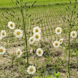 アキノノゲシ キク科 アキノノゲシ属 なんて可愛らしいアキノノゲシたちなの〜🌼🌼🌼🌼🌼 稲刈りが終わった田んぼの土手から見えたアキノノゲシにキュンキュンしちゃいました(> ਊ <)💕