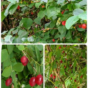 里山お散歩♪ ウグイスカグラの赤い実を見つけました🍒 赤い実にチョコンと付いた小さな葉っぱが可愛らしいんです☺️ 何個か採って いただきました。 クサイチゴの実の甘さより優しい甘さで甘味の違いが わかりました😋 ウグイスカグラ スイカズラ科 スイカズラ属 春に咲くお花も赤い実も可愛いです💕