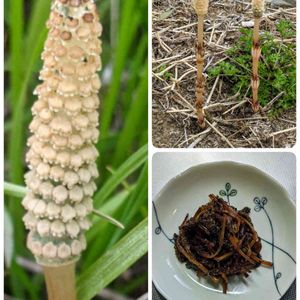 スギナ トクサ科 トクサ属 身近な野草山菜を食べてみる。 先日ツクシの佃煮を作りましたがトクサは利用できないのかと調べました。 トクサは炒めもの、お茶🍵など利用できるそうです。 トクサ茶🍵 作りました♪ トクサを洗ってネットに入れて干して乾燥させて1〜2cmに切ってフライパンで乾煎りしたら出来上がり! 茎茶みたいです! 切っている時からお茶の香りがして乾煎りしたらますますお茶の香りがしてきました! 急須に入れたスギナ茶にお湯を注ぐ3分ほど蒸らしてから湯のみ茶碗に注ぎます。 薄めの日本茶という感じでしょうか… 私は濃いお茶が好きなので次はスギナ茶と日本茶をブレンドして飲もうかな? 栄養も効能もあるスギナ茶は検索したら売っていました。 買うとお高いです。 厄介モノのスギナでスギナ茶 香りもお味もイケました😄👍 ついでに書き足しますと せっかく買った日本茶が美味しくなくてガッカリした経験ありますよネ💦 フライパンで乾煎りすると香ばしくて美味しいほうじ茶になりますヨ🍵🎶