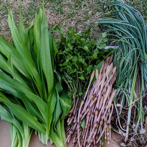今日の里山お散歩は野草観察会の花友さんと一緒に八重咲きヤマザクラ🌸🌳や日本ミツバチ🐝の巣など案内しながら山菜や野草を摘みました。 左から ヤブカンゾウ ススキノキ科 ワスレナグサ属 セリ セリ科 セリ属 ツクシ トクサ科 トクサ属 ノビル ヒガンバナ科 ネギ属 食べるのが楽しみです〜😄
