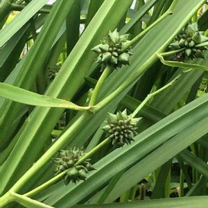 ミクリ 先月 投稿したミクリの花の現在 栗のイガから金平糖みたいになっていました😊 金平糖というより痛そうだから忍者の武器みたい‼️