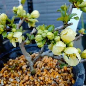 3日前に投稿した庭のボケ。 このところの暖かさで一気に蕾が膨らんで来ました🎶 もう咲くかな🌸🌸🌸🤗