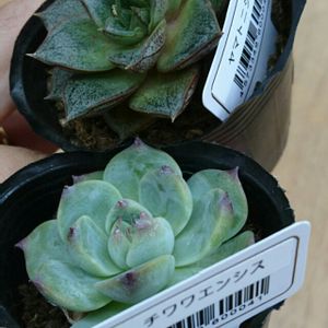 しゃもじを買いに百均に行ったら…… 多肉が入荷したてで…… 忘れないうちにしゃもじをカゴに入れて多肉をジロジロ👀 ジョイスツーロって多肉永遠さんのサイトで見た事ある!って思い出し とりあえず試しに購入✨ ピンクルビーはきっと ピンクルルビーで間違いないな……