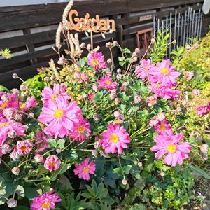 こちらは赤の八重咲き秋明菊 こっちは植えてから十年くらい経つので1mを越える高さがあります