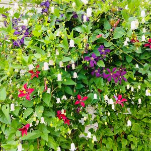 我が家のクレマチス エトワールバイオレットが徐々に減って白のカイウと赤のグレイブタイビューティが多くなっています