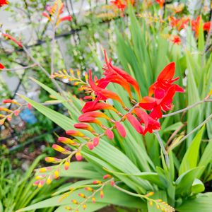 この季節で最も鮮やかな花色をつけるクロコスミア「ルシファー」