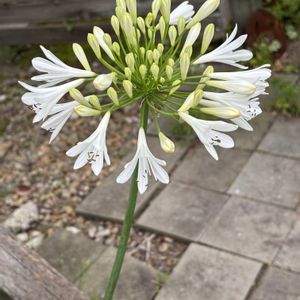 大好きなアガパンサス。 背の高いブルーと背の低い白、同じく背の低い濃い青の3種類育てていますが、去年メルカリで花木を購入した際おまけでいただいた白いアガパンサス🤍 背が低いものだと思っていたらブルー並みに背が高い品種でした😳 すごい見応えある👍 こんなのおまけでいただいちゃって申し訳ないくらい。 とっても素敵です😍