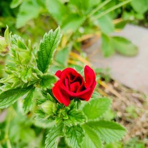 アップにするとバラにしか見えない深紅のポテンティラ