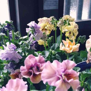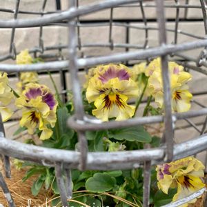 またまたビオラコレクションです😅 金曜日くらいの写真ですが、ノブコセレクション・プチフリルです❤️ このクリーム色の小さいフリフリにハートを射抜かれ、衝動買いした子です。(ほとんど衝動買いですが笑) 鳥かごにピッタリー!でも満開の頃にはちょっと窮屈かな? 途中で植え替えるかもしれませんが、しばらくこれで楽しみます😊💕