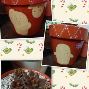 さらに💕 みちゃさんリメ鉢と天竺さんが♡~(>᎑<`๑)♡ 鉢にはとっても可愛いハニワちゃんが(╥ω╥`)💕 私の好きな色の花を持ったハニワちゃんまで(///Д///)💕 早速、天竺さんをみちゃさん鉢に植えました💕 本当に感謝です。゚(゚´ω`゚)゚。💕