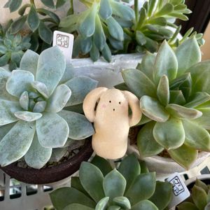 こんにちは☁️ 🏷ハニワの日 に日焼けさせてしまった(ごめんね🙏) みちゃさん作のハニワで参加します〜♪ 7号鉢のハートカズラさん凄い勢いで成長中です♡♡♡ タニパトしていたら七福神さんの一つが明らかに変!!Σ(⊙⊙)ドキッ 半分が黄色で半分がグリーン💦 バラバラになりそうな様子だけど、まだ茎に付いてました… どうにか出来ないかと胴切りしてみたけど、色がもうダメ(×_×;) 抜いて見たら元気な白い根がたくさん出てて、順調に成長途中だったのにと余計に悲しくなりました( ´тωт` ) 昨日はセンペルさんの一つがペチャンコにジュレてました…はぁ〜落ち込みます(泣)