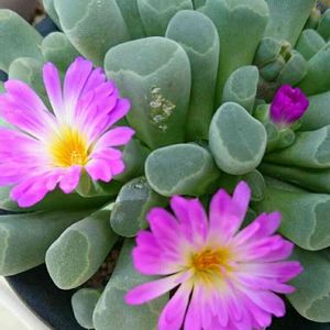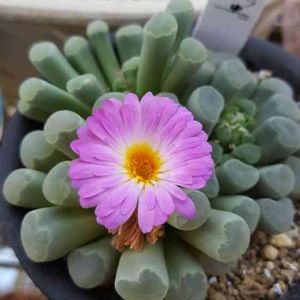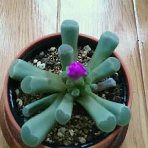 おはようございます😃 こないだアデニウムと一緒に家に来たフリチア プルケラ 光玉✨ 私知らなくてハオルチアかと😅花殻見て違いを認識。メセンの仲間なんですね(*⁰▿⁰*) まだ蕾あるので楽しみ〜😊
